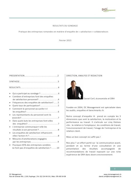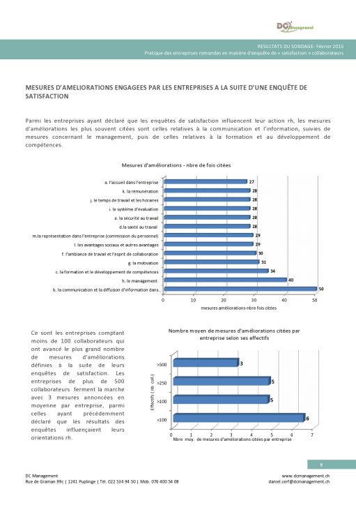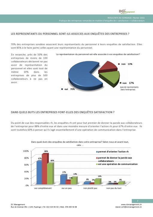 Les enquêtes de satisfaction : résultats du sondage sur les pratiques des entreprises romandes