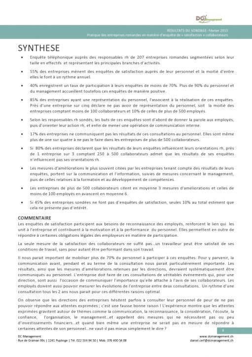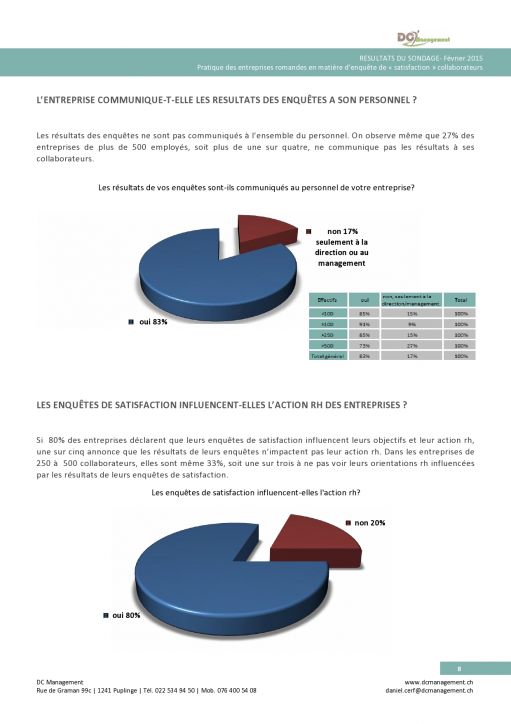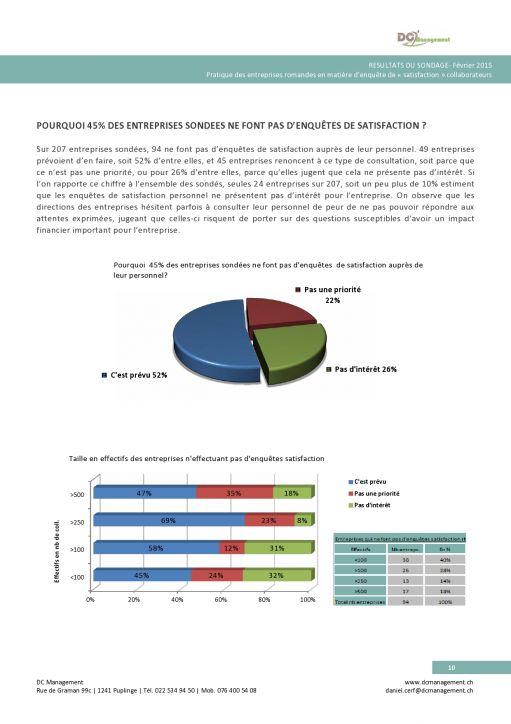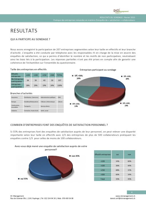 Résultats: les pratiques de plus de 200 entreprises romandes en matière de sondage satisfaction.