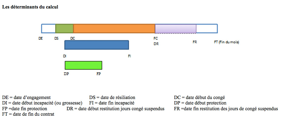 Le calcul devient rapidement assez complexe par exemple lorsqu’une personne entre en 2ème année de service durant la période FR-DR après avoir épuisé son droit de protection suite à une succession de maladies et rechutes.
