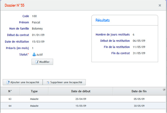 L’application vous permet d’enregistrer un collaborateur et suivre l’évolution de la situation en ajoutant au fur et à mesure des événements nouveaux influençant la date de fin de contrat sans devoir ressaisir les données.