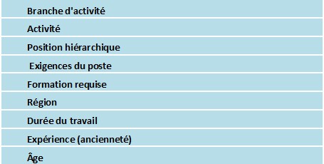 Les variables suivantes sont les dénominateurs communs permettant de constituer des groupes homogènes dans lesquels les salaires pourront être comparés: